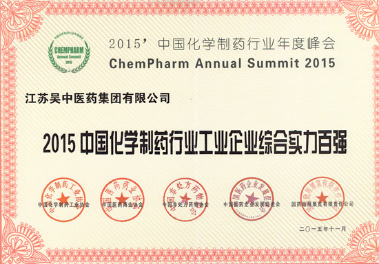 江苏开云线上平台集团荣获“2015年中国化学制药行业工业开云线上平台综合实力百强”