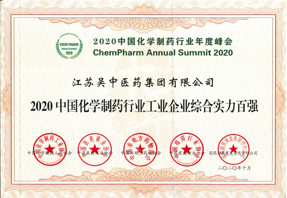 凭借过硬的产品质量、诚信为本的经营管理与持续推进的品牌建设,开云线上平台(集团)官方网站荣获“2020中国化学制药行业工业开云线上平台综合实力百强”。