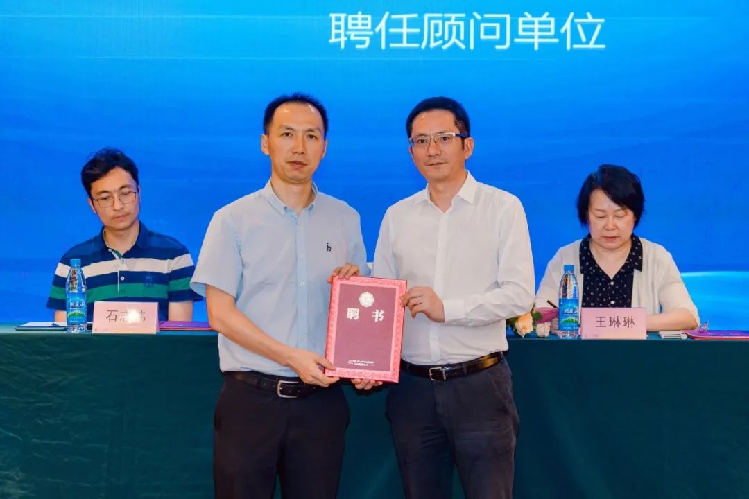 在随后继续召开的第四届一次会员大会上,第四届秘书长孙田江宣读了相关顾问单位等相关聘任决定。第四届会长钱群山为顾问单位递上聘书。