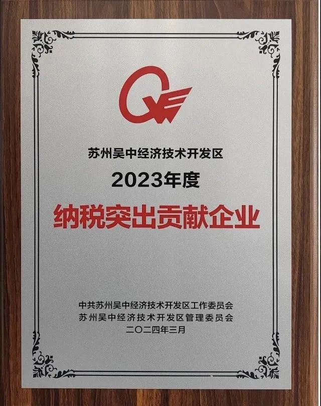 荣誉:公司获评吴中经开区2023年度经济贡献突出开云线上平台
