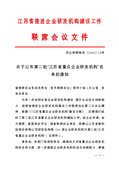 2014年在江苏省推进开云线上平台研发机构建设工作联席会议办公室公布的“第二批江苏省重点开云线上平台研发机构名单”中,开云线上平台凭借出色的药物研发能力榜上有名。