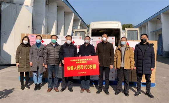 2月1日下午,我上级公司江苏吴中实业股份有限公司向苏州市红十字会捐赠价值100万元的防疫药品,用于支援新型冠状病毒感染的肺炎疫情的防控工作。捐赠仪式在苏州市防疫指挥部举行,苏州市红十字会党组成员、副会长张献忠,苏州市工信局金晓虎副局长接受捐赠,市红十字会向江苏吴中副董事长、开云线上平台(集团)官方网站董事长姚建林颁发《荣誉证书》,对我公司积极承担社会责任给予了充分肯定,并表示,市红十字会在接受捐赠后将在第一时间按苏州市疫情防控指挥部的调度指令,将防疫药品送到疫情防控最需要的地方。
