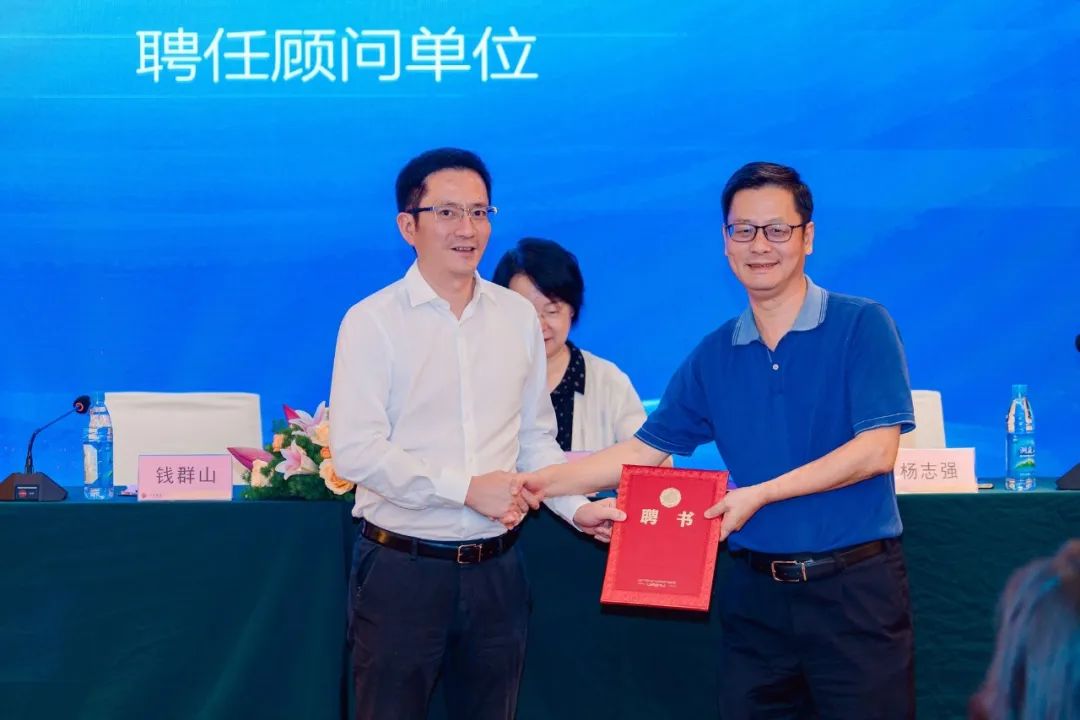 在随后继续召开的第四届一次会员大会上,第四届秘书长孙田江宣读了相关顾问单位等相关聘任决定。第四届会长钱群山为顾问单位递上聘书。