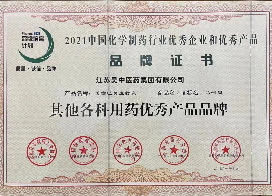 美索巴莫入选中国化学制药行业“优秀产品品牌”