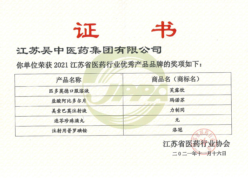 开云线上平台五项产品荣获江苏省医药行业优秀产品品牌